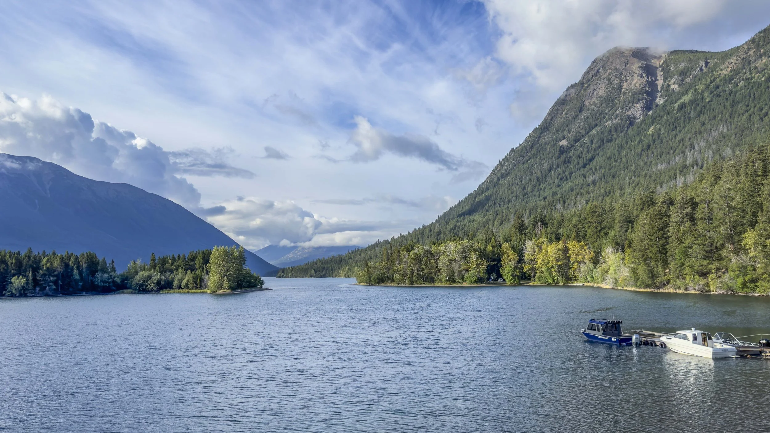 A bear swam across the narrow point where Chilko river became Chilko lake