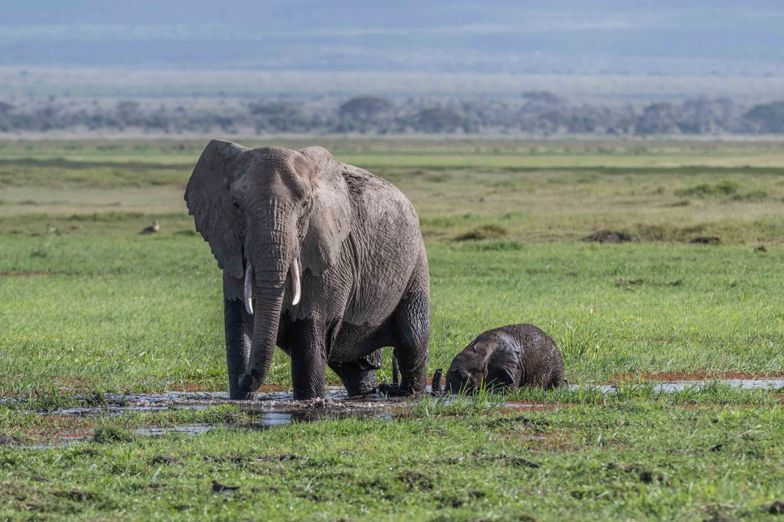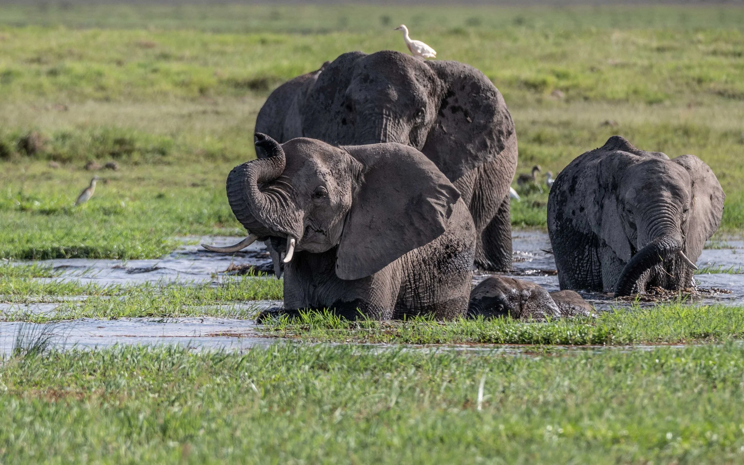 My favorite time watching baby elephants is when they start entering the massive Amboseli swamps. It takes great courage to slide down the swamp edge as the mother nudges them along. The tiny little trunk waving just above the water is beautiful to watch. I can just imagine their little feet paddling like crazy under water. It’s always a great lesson in what can be achieved when relationships are centered on trust. Fear is easily conquered.
