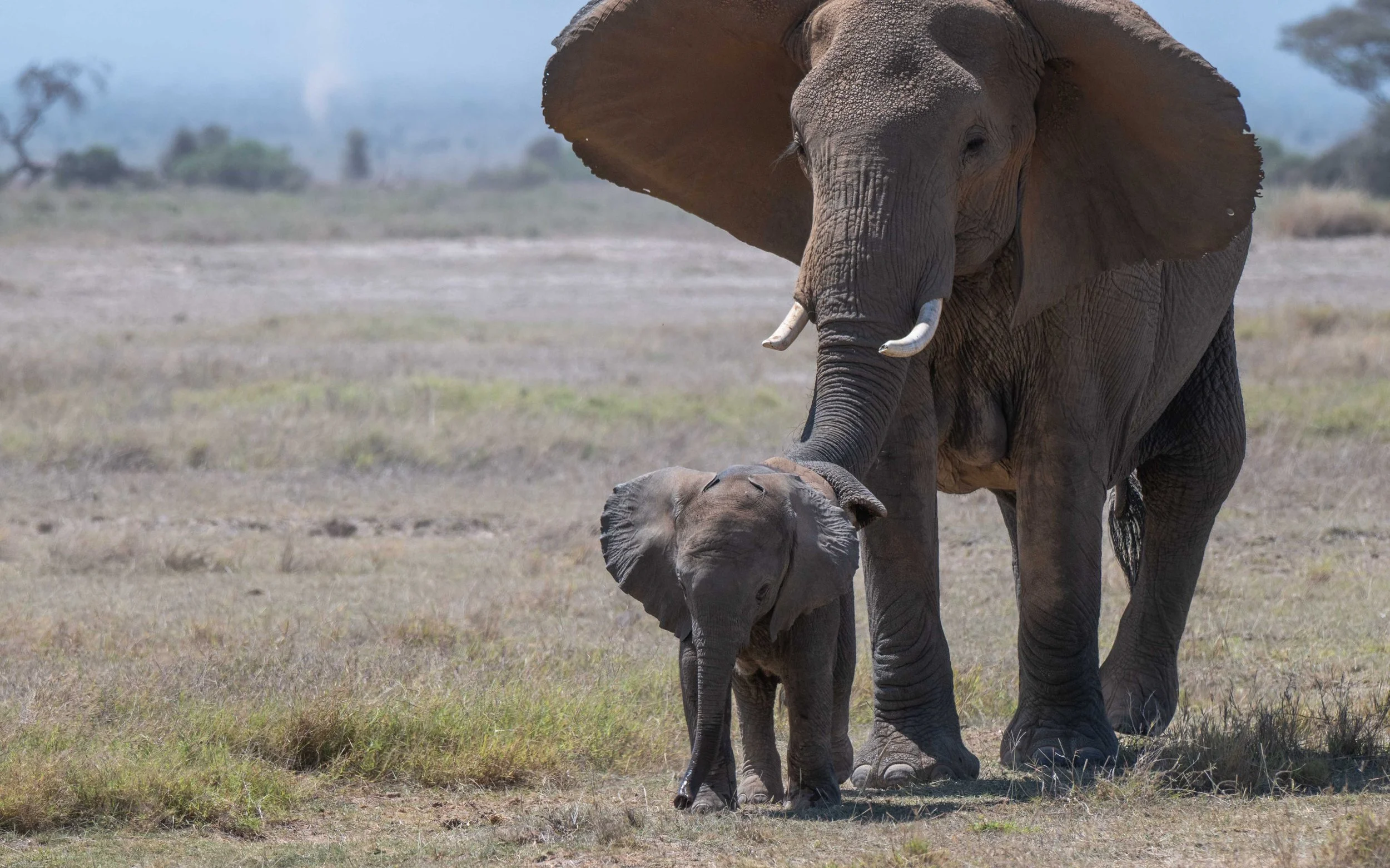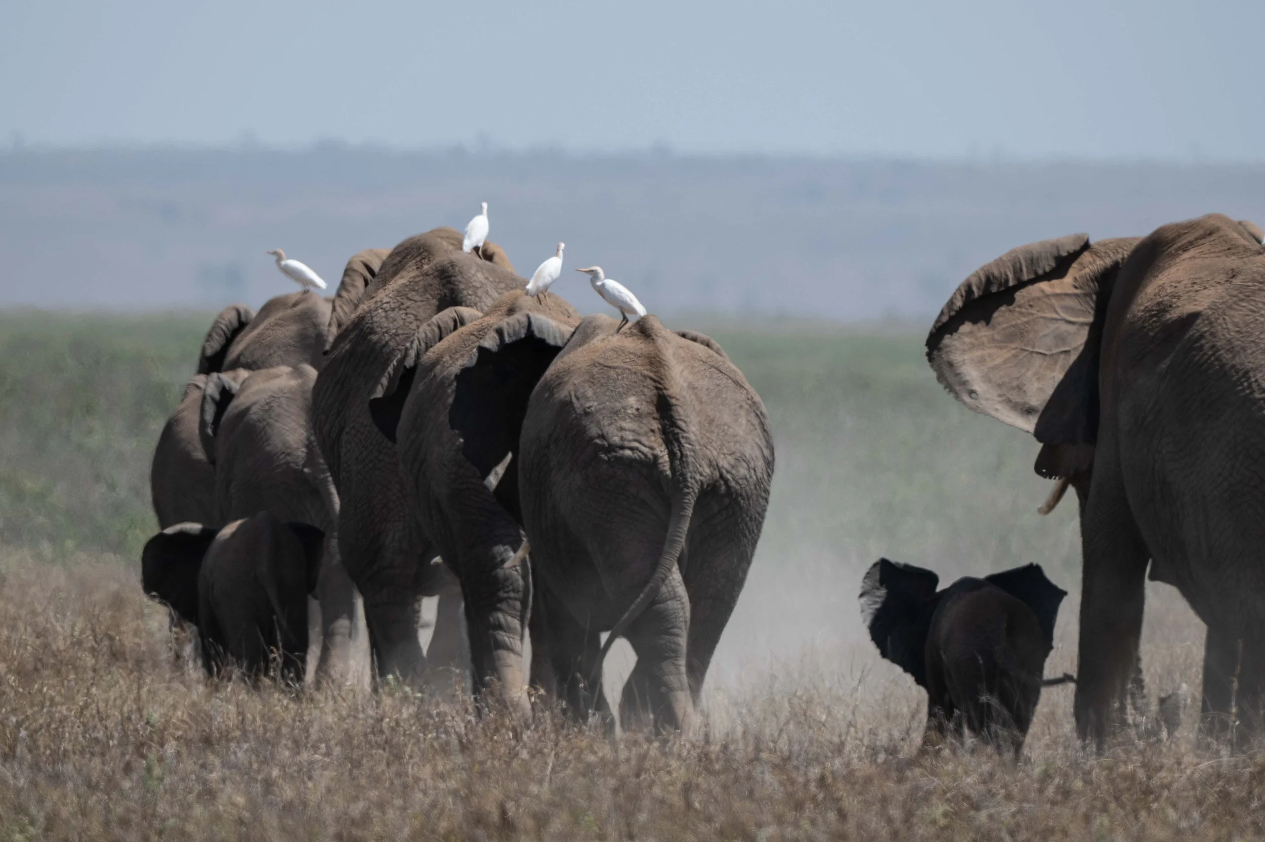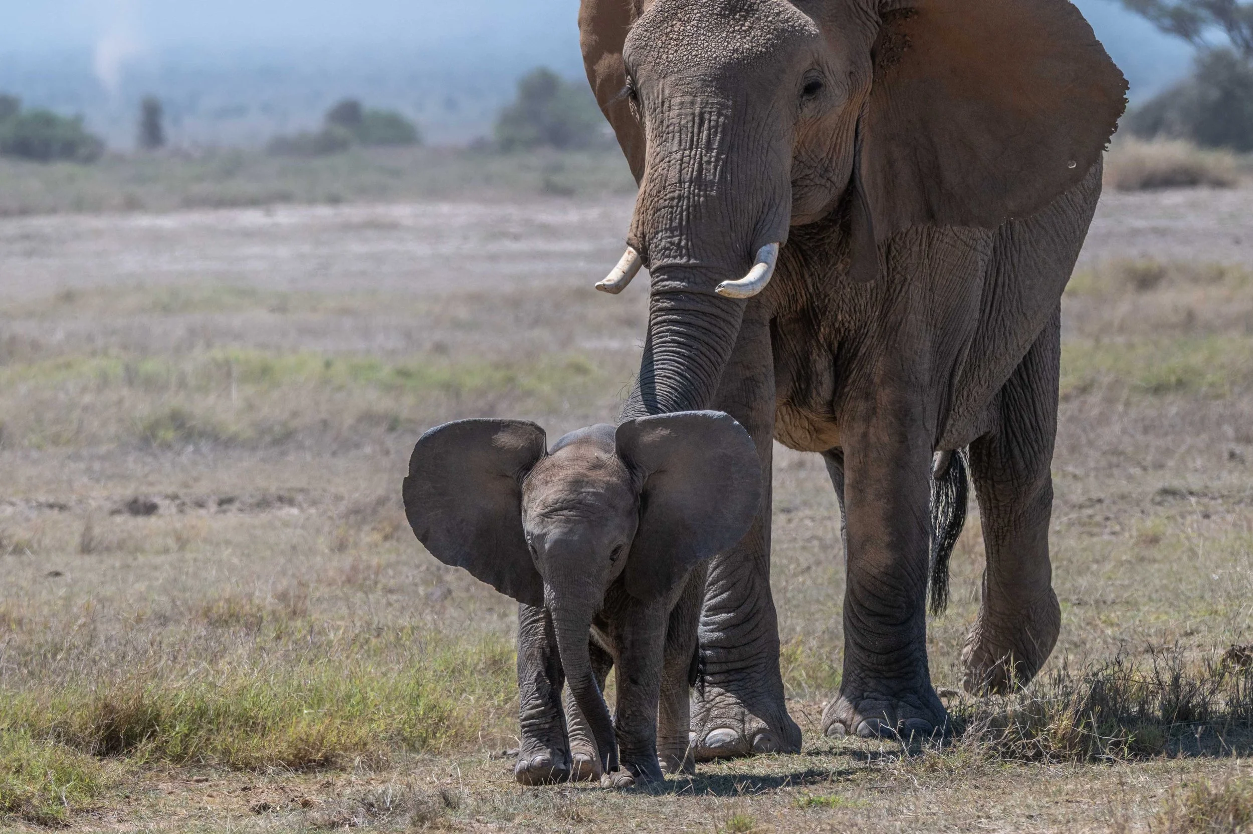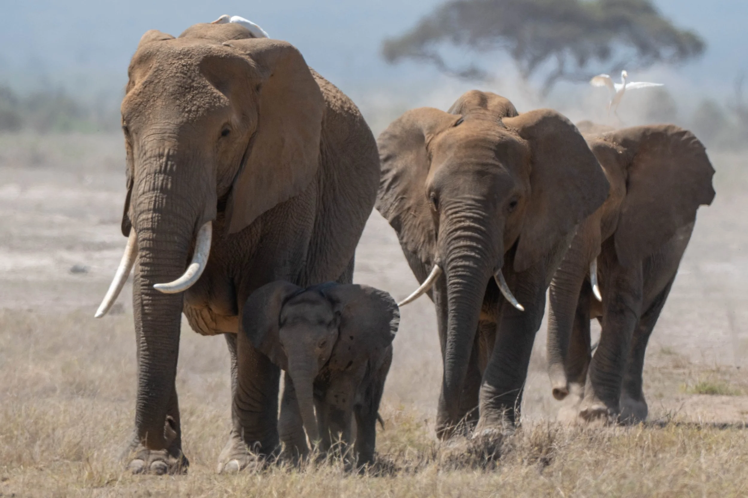 As the herd migrated onto the Amboseli Plain the tiny elephant strode ahead exuding confidence and energy.