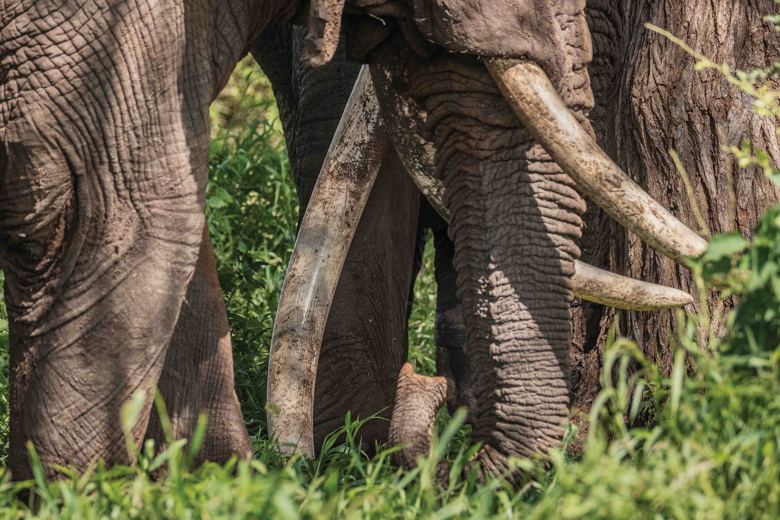 The tusks of a “Big Tusker” bull elephant weigh over 100 lbs (45kgs) each making them targets for poachers and the ivory trade. The only one who needs ivory is an elephant. ©kathykarn