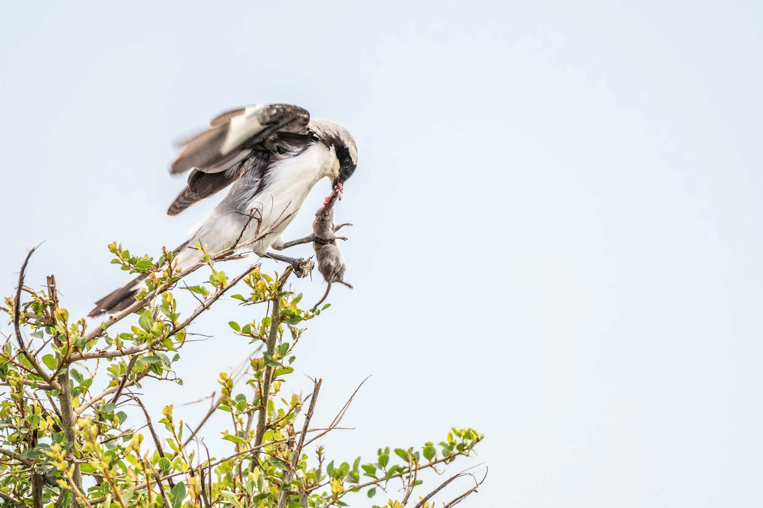 Shrike aka Butcher Bird devouring a rodent ©kathykarn