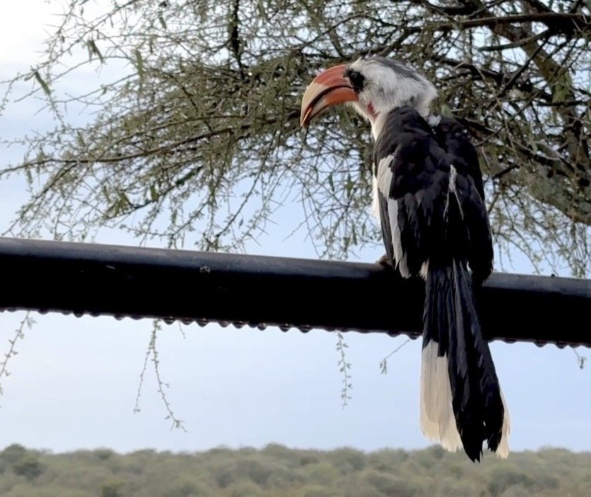 In The Lion King, Zazu reports on the state of the kingdom, likewise, in the wild hornbills constantly scan for danger and are quick to sound alarm calls when predators appear. In some African traditions hornbills symbolize communication, guidance, and guardianship, ideas that are reflected in Zazu’s role as royal advisor and messenger. Turn up your volume to hear my conversation and Zazu’s morning report (25 sec) from a porch in Laikipia, Kenya.